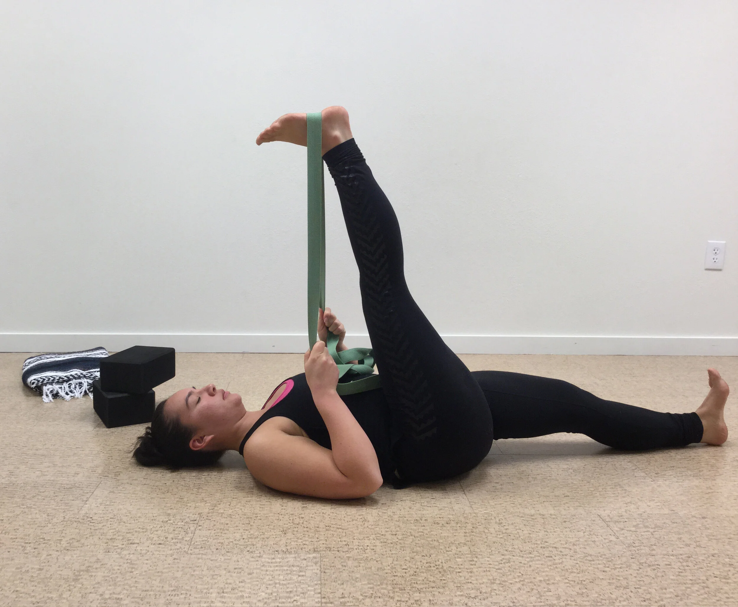 Behold! The passive stretch! Walk into any group fitness studio or class anywhere and you'll find people passively stretching while chatting about how they're not flexible, or as flexible as they used to be. There's also the super bendy person in the corner and everyone is marveling at how their knee is touching their nose. What is a passive stretch exactly? A passive range of motion does not require any voluntary muscle activity in the target area to get into the position or stretch. We use an external force like a strap, partner, or gravity to assist us. Take for example the classic strap-assisted hamstring stretch (see above). You loop one foot into the strap, pull and pull, one hip moves into flexion and at some point we expect to feel a stretch or sensation of tightness in the hamstrings which tells us to stop pulling.